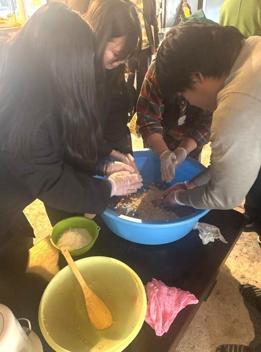 【岡山大学】岡山県久米南町にて岡山大学と岡山理科大学の学生が「味噌づくり体験」を実施