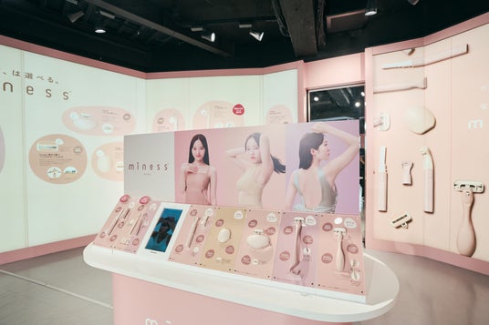 会場の1階では「なくす、は選べる。」というブランドコンセプトを、minessならではの柔らかなニュアンスカラーを空間全体で表現。新商品の「miness プチまゆ用」を含む全商品ラインナップを展示し、miness公式instagramをフォローいただいた方にボディ用カミソリのサンプリングを実施いたします。ブランドが提案する新しいパーソナルケアのあり方をトータルに体感いただける空間です。