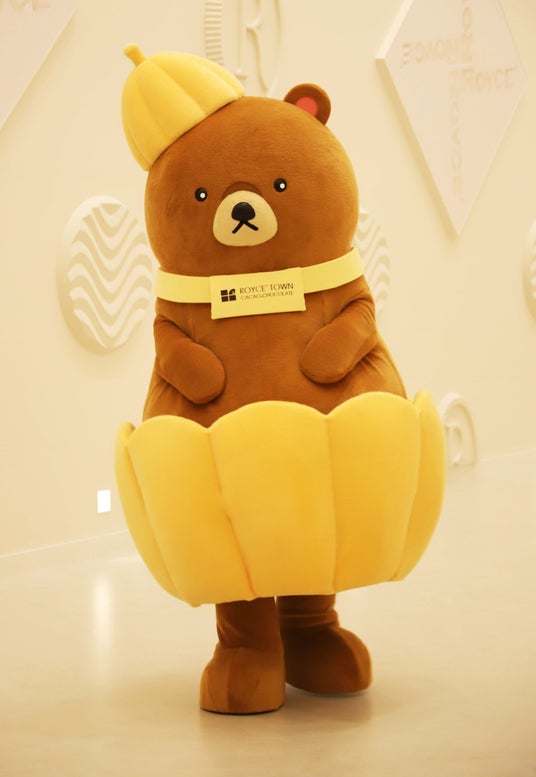 ボクの名前は、カカオクマ!カカオポッド(チョコレートの原料・カカオの実)の帽子やパンツがチャームポイントの、施設のマスコット“カカオクマ”。楽しいことが大好きで好奇心旺盛!不定期で施設に現れて、遊びに来たお客様とお友達になっちゃいます。ロイズの公式Instagram(https://www.instagram.com/royce_jp/)では、カカオクマが施設で過ごすお茶目な様子を定期的に発信していますので、ぜひフォローしてチェックしてください。