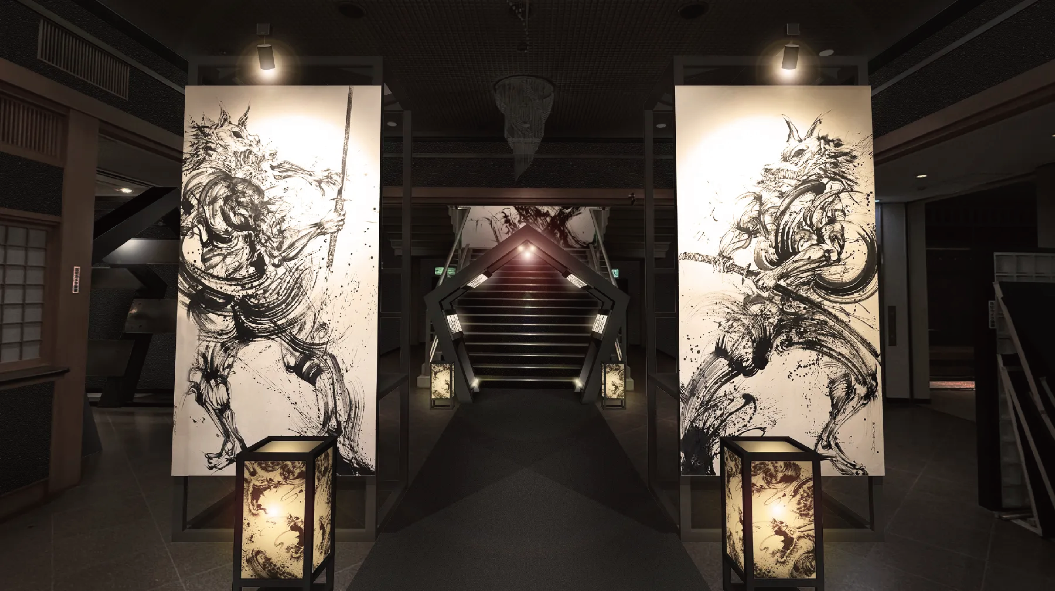 西元祐貴の特別展示では100点以上の墨絵作品を、迫力ある空間で鑑賞できます。