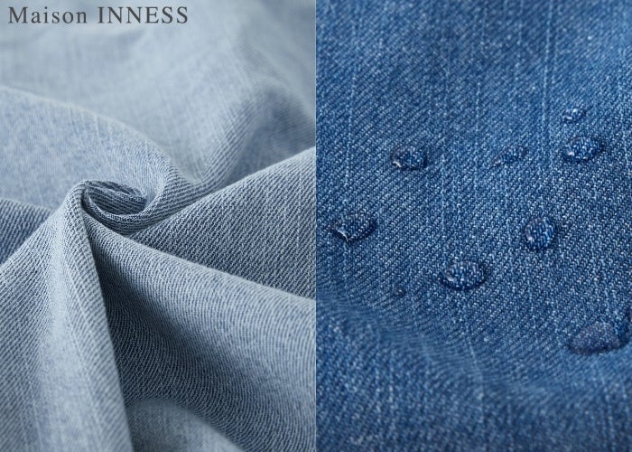 2. 見た目は本格デニム、機能はハイテク。「はっ水加工」で汚れを気にせず楽しむ綿100%のナチュラルな風合いや加工感といった「デニム本来の魅力」を損なうことなく、実用的な「はっ水機能」をプラスしました。水分を弾くはっ水加工が、肌への張りつきを抑え、デニムにありがちな不快感から解放します。6.7オンスの軽やかな素材感は肌触りも良く、ロングシーズン快適に過ごせる機能美を追求しました。