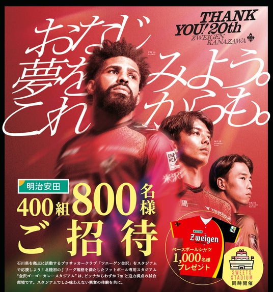 この度、ツエーゲン金沢(J3)は、3月22日(日)開催の明治安田J2・J3百年構想リーグ第7節 ツエーゲン金沢対FC大阪戦を、「明治安田金沢支社 スペシャルマッチ」として開催することが決定いたしました。