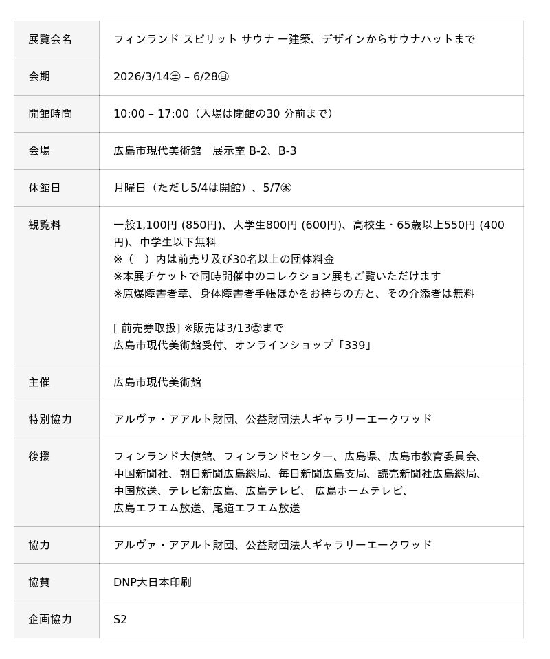 【広島市現代美術館】フィンランド スピリット サウナ ー建築、デザインからサウナハットまで