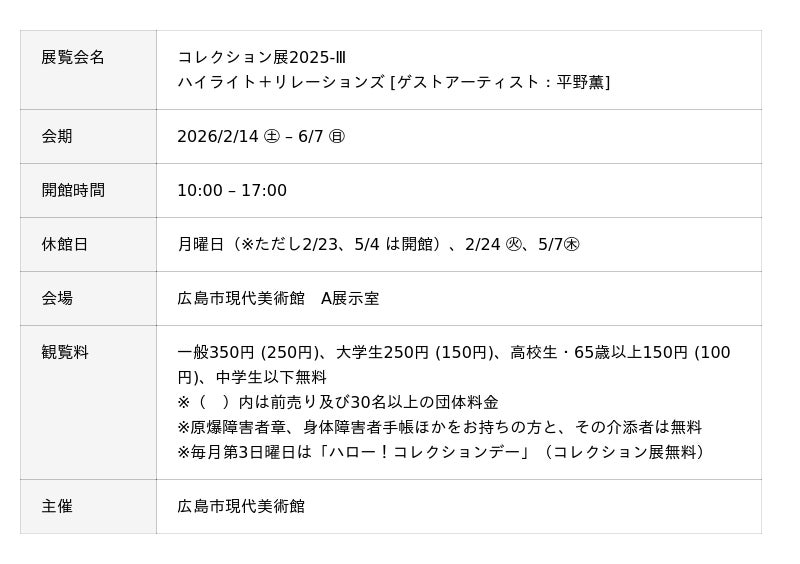 コレクション展2025-III ハイライト+リレーションズ[ゲストアーティスト:平野薫] 開催中-6/7(日)