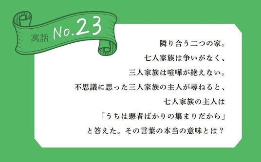 不思議に思った三人家族の主人が尋ねると、七人家族の主人は「うちは悪者ばかりの集まりだから」