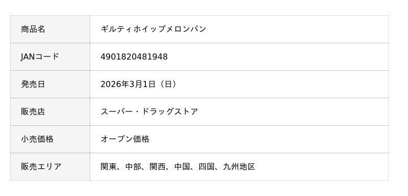 敷島製パン株式会社(Pasco)は、学習院大学経済学部の学生と共同開発した「ギルティホイップメロンパン」を、2026年3月1日(日)より、関東、中部、関西、中国、四国、九州地区にて発売します。