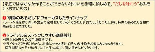 ●参考:フリーズドライ(粉末)みそ汁ラインナップ