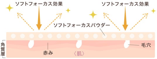 ソフトフォーカスパウダーが肌の凹凸や色ムラを自然に補正。
