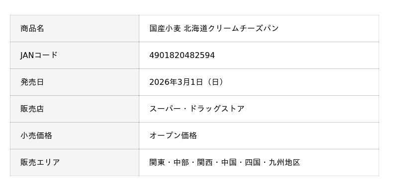 敷島製パン株式会社(Pasco)は、「国産小麦 北海道クリームチーズパン」を2026年3月1日(日)より、関東・中部・関西・中国・四国・九州地区にて発売します。