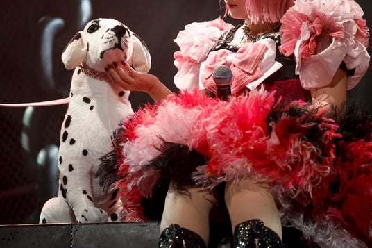 くまさんバンドの演奏後、会場は一転して静寂に包まれる。しょーこが奏でるグロッケンからしっとりと始まったのは、別れた恋人を想ったナンバー「優しくない女の子(アコースティックver.)」。ステージが明転すると、ビジューのあしらわれたリボンがついたトップスに、ギラギラの厚底ブーツ、裂いたチュールを重ねたボリュームあるスカートにコルセットでパンクロリータを意識した衣装でコレサワが登場。階段に腰掛け、歌詞の内容とリンクするように犬(エリザベス)のぬいぐるみを撫でながら歌い、観客はじっと聴き入る。さらに「みんな、後半も盛り上がっていけますかー!? 別れ話をしにいこう!」と「前髪」を明るくパフォーマンスした。