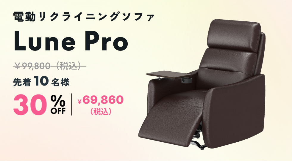 第1弾では、オフィスチェア「C7 Lite」と、電動リクライニングソファ「Lune Pro」新色ダークブラウンが対象となります。いずれも数量限定のため、早めのご検討をおすすめします。