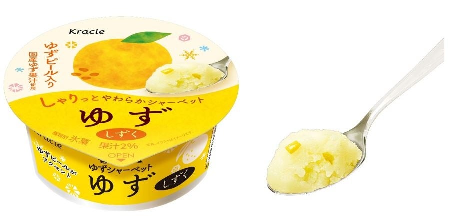 ・国産ゆず果汁を使用した、爽やかでやわらかなシャーベット