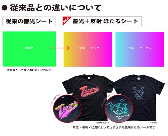 スーパーほたるシートは、暗闇で強い光を発する機能性に加え、オーロラメタリックでカラフルな見た目。「かっこいい」「かわいい」といった表現にも対応できる高いデザイン性を備えており、日常使いのファッションアイテムとしても活用できます。