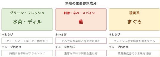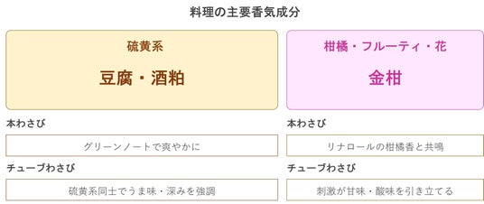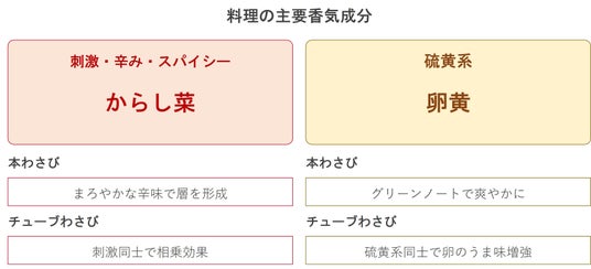 <チューブわさび>硫黄系同士でコク・うま味を増強、持続する辛味が甘味を引き立てる