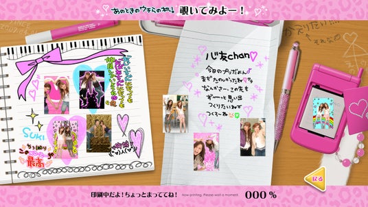 第1弾から好評の、選んだ機種モードの発売年へタイムスリップしたかのように感じられる演出や、『プリ帳』や手紙、携帯の裏にご自身が撮影したプリが貼られる落書きブースでの演出などを引き続き搭載。さらに、「PINK編」には、2000年代の“姫ギャル”をキャラクター化したPINKちゃんが撮影画面や落書き画面に登場し、ゲームをサポートする演出も。復活企画ならではの、平成の世界観たっぷりの撮影体験をお届けします。
