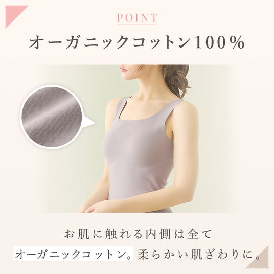 今年デビュー15周年を迎える「KIREILABO(キレイラボ)」は、長年肌への優しさを研究し、新たな製法で肌にあたる部分がオーガニックコットン100%で、外側には伸縮性のある素材を使用した生地を開発。通常の綿100%インナーにはないストレッチ性を確保しました。さらに、縫い目による刺激に対しても、縫い糸を一切使わない接着技術を活用した「完全無縫製(R)」で、肌への優しさを組み合わせた商品となっております。