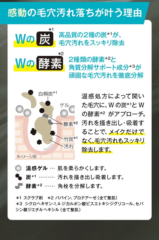 感動の毛穴汚れ落ちを実現!黒い〈ホットクレンジングゲル〉。