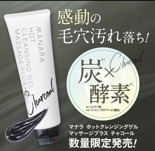 シリーズ推計販売本数2,900万本※1を突破したマナラの大人気クレンジング〈ホットクレンジングゲル マッサージプラス〉に炭をプラスし、さらに毛穴汚れ落ちにこだわった〈ホットクレンジングゲル チャコール〉。毎回予想以上の売れ行きで完売となり、今年も数量限定で再登場です。