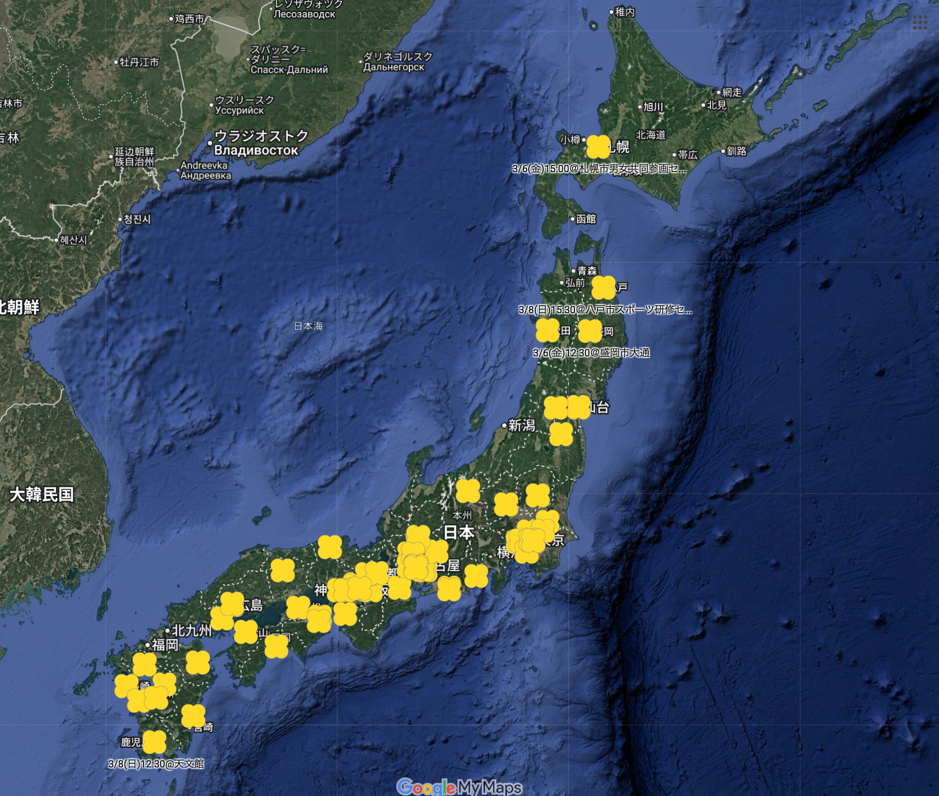 女性の休日イベントマップ