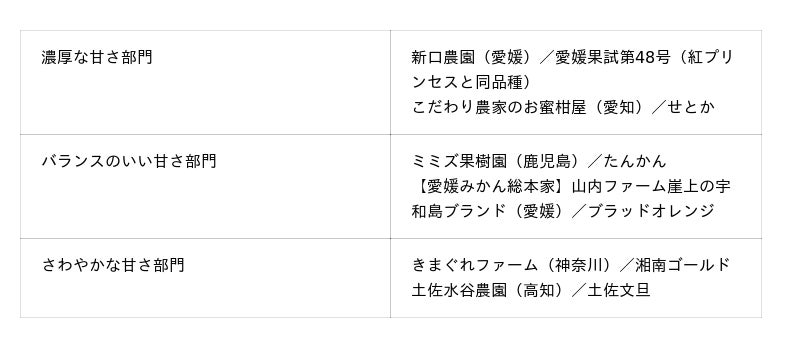 甘さ一辺倒ではなく、香りや個性を楽しむ柑橘が評価されたことは、“味わう”から“体験する”へと広がる現代の食の価値観を象徴する結果ともいえます。