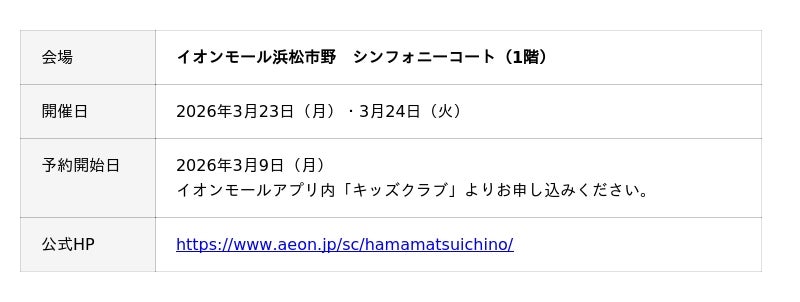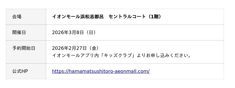浜松エリア2会場で人気体験イベント開催決定!