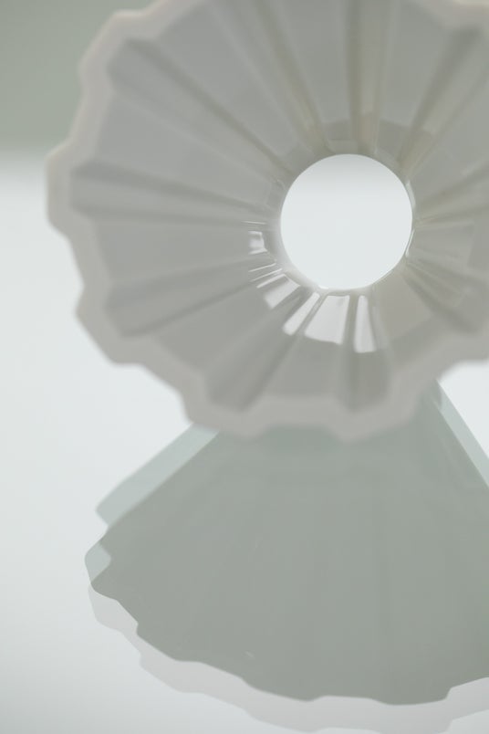 扇形のリブが10本。適度に空気の逃げ道が生まれ、ウォーターフローの速度が促されることで、目詰まりしづらい設計です。また、凹凸の溝と面のバランスを考慮し設計したことで、ドリッパーにフィルターを安定してセットすることが可能です。