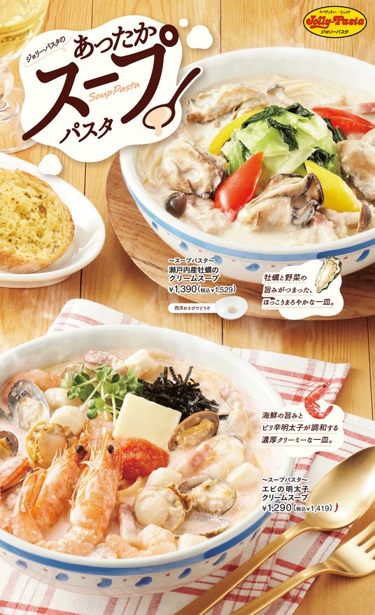 【ジョリーパスタ】具沢山な春色のスープパスタが登場!「~スープパスタ~ エビの明太子クリームスープ」発売