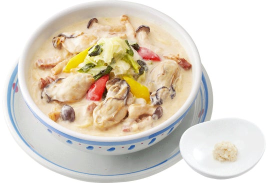 牡蠣の旨みが溶け込んだクリームスープに、肉厚でジューシーな瀬戸内産牡蠣、キャベツ、ほうれん草、パプリカ、ベーコン、しめじを合わせたスープパスタです。旨みたっぷりの牡蠣と、甘みのある野菜は、濃厚なクリームスープと相性抜群。別添えの西洋わさびを加えると、上品で爽やかな味わいに変化します。