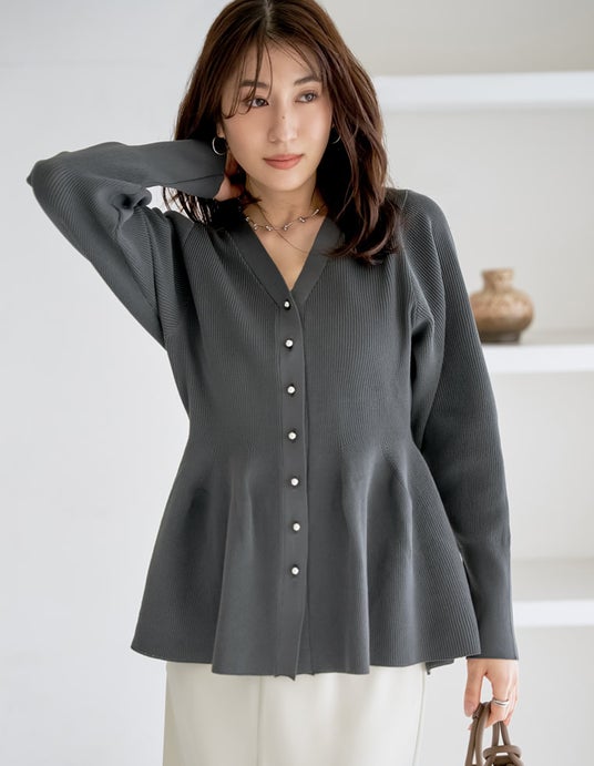 ウエストがシェイプされたペプラムニットは、着るだけでスタイルアップが叶う一枚。