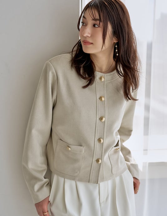 金ボタンがアクセントのジャケットに、真っ白なパンツで気品溢れる着こなしに。大切な商談や学校行事にも自信を持って臨める、究極の好印象スタイルです。