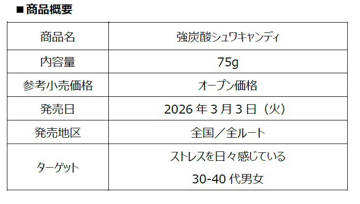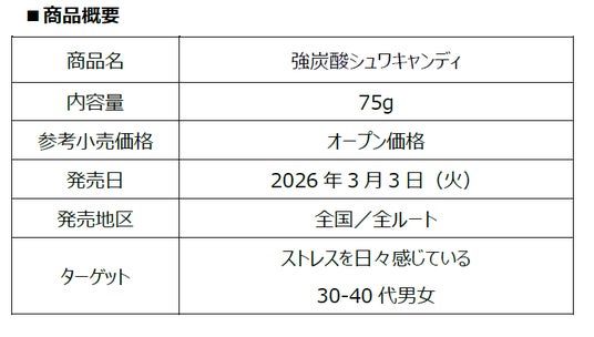 春先の新生活に向けて気分をリフレッシュでき、長く続くシュワシュワ感が魅力の「強炭酸シュワキャンディ」の発売により、お客様に笑顔をお届けしてまいります。