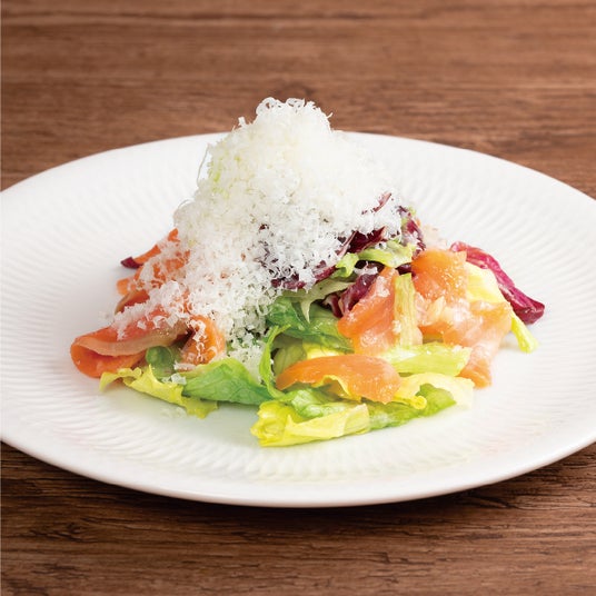 パルミジャーノチーズかけ スモークサーモンのサラダ仕立て