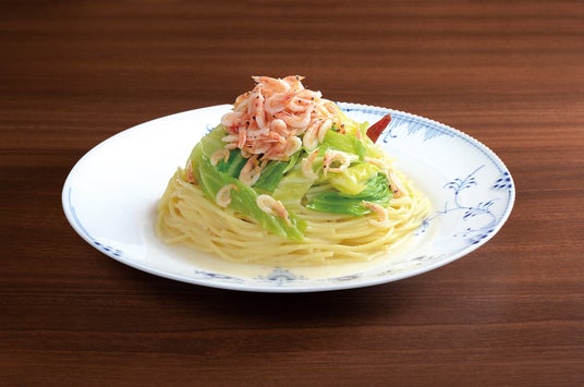 釜揚げ桜海老に、この時期ならではの柔らかく甘い春キャベツを合わせた春の定番パスタ。