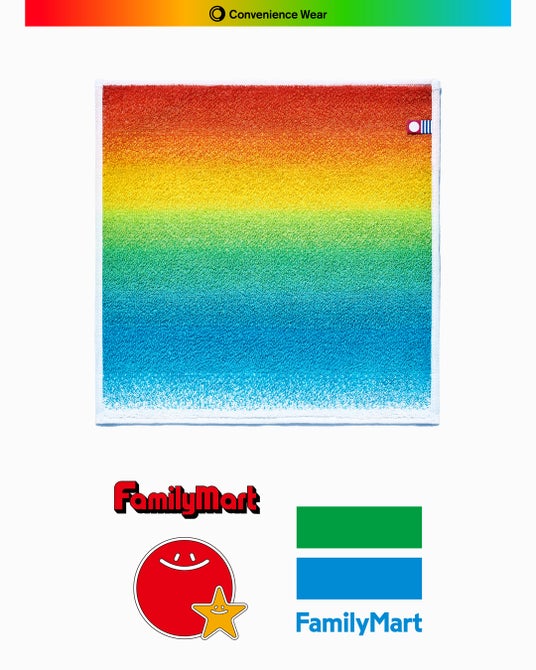 【内容】「今治タオル」クオリティの高吸水仕様です。ファミリーマート45周年記念カラーとして、1980年代までファミリーマートのシンボルマークとして使用されていた「太陽と星」とファミリーマートカラーを配色しました。