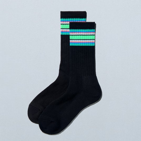 【内容】男女兼用のラインソックスです。2026年春夏のシーズンカラーを配色しました。足底はパイル編みの肉厚仕様です。抗菌防臭加工でニオイにくい仕様です。