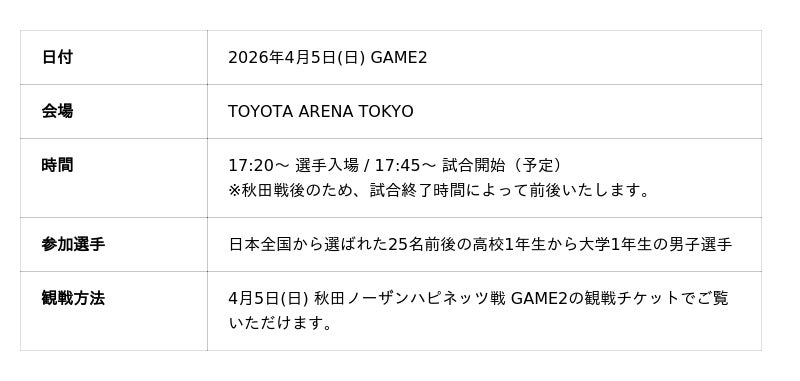 ぜひTOYOTA ARENA TOKYOで若き才能たちに熱い声援を送ってください。