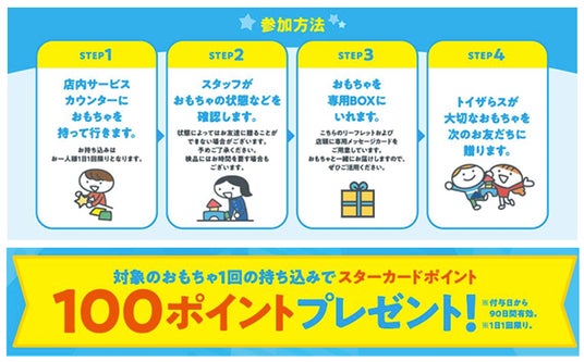 対象おもちゃのお持ち込みでスターカードポイント100ポイントをプレゼント