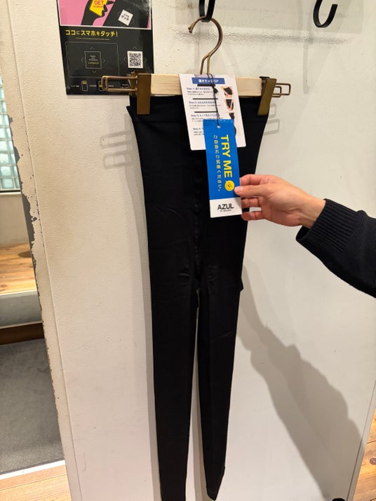 そこで本取り組みでは、AZUL BY MOUSSY様の一部店舗にて「スリムガードル」および「スリムレギンス Premium」を展開し、試着室にて着用感を確認できるサンプルをご用意しました。