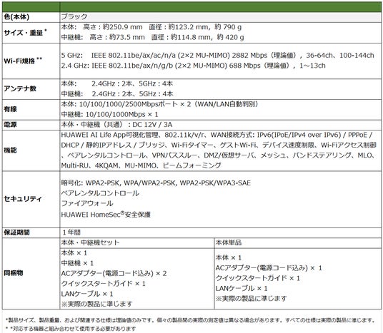 『HUAWEI WiFi Mesh X3 Pro』の主な仕様