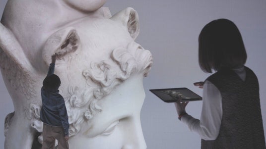 現場では、貴重な作品にダメージを与えない独自の機材と手法で、細心の注意を払いながら3Dスキャナで形状を記録、同時にあらゆる角度から何百枚もの画像を撮影します。その後は、データを処理してモデリング作業を行うことで3Dモデルを作成、現場で撮影した画像をテクスチャとして貼りつけて完成させます。出来あがるのは、色も質感も驚くほど本物に近い3DCGです。