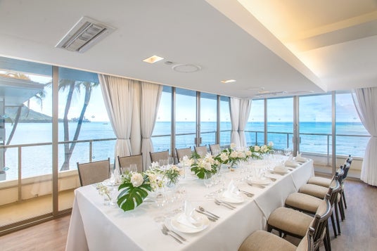 KAHAWAI CHAPEL挙式+アウトリガー・リーフ会食がリーズナブルに楽しめる期間限定プラン!KAHAWAI CHAPELで挙式の後に、アウトリガー・リーフのシェフとともに創作したオリジナルコース料理を、期間限定の特別料金で楽しめるパーティプランが登場。ハワイの食材を使ったコース料理と、オーシャンビューのパーティルームでの極上のひとときは、まさに唯一無二。KAHAWAI CHAPELとアウトリガー・リーフだからこそ実現した、ここでしか体験できないパーティプランです!