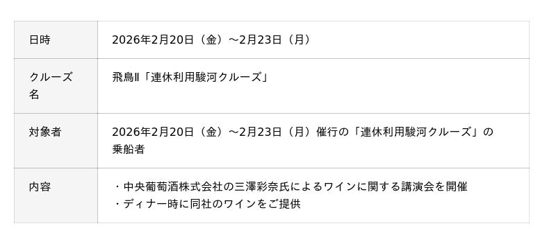 クルーズ客船「飛鳥II」との連携にてワインに関する特別講演を開催しました