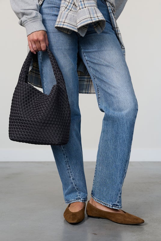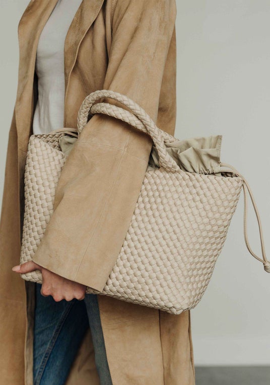 MARREAのバッグは、撥水性と耐久性に優れたネオプレン素材を丁寧に手編みで仕上げたこだわりのアイテム。軽量で持ちやすく、通勤、ショッピング、ヨガ・ジム、子どもの送迎、旅行など幅広いシーンで活躍します。ジェンダーレスで持つ人を選ばないサイズ展開も魅力的。さらにバッグ内部のクリップ機能でフォルムを変えられるため、その日のスタイルに合わせたアレンジも可能です。