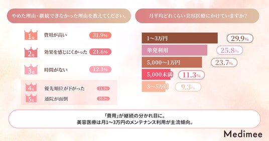 【やめた理由・継続できなかった理由を教えてください。また、月平均どれくらい美容医療にかけていますか?】