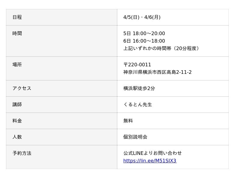 占い師養成CAMPの説明会と同時に、くるとん先生の対面鑑定も横浜で行います。すでにご予約いただきました方、誠にありがとうございます。くるとん先生が横浜で鑑定される貴重な機会になりますので、奮ってご参加ください。