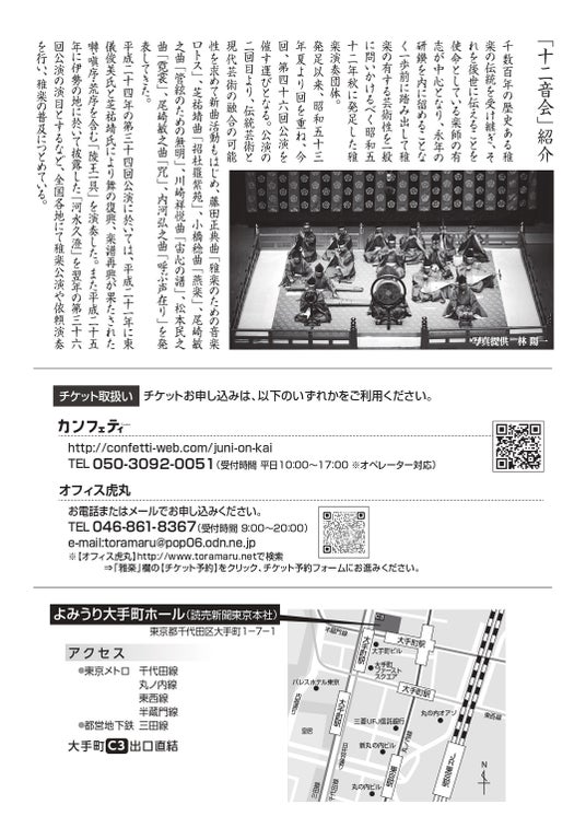 『十二音会 第四十六回公演 雅楽』が2026年5月31日(日)によみうり大手町ホール(東京都千代田区大手町1-7-1)にて開催されます。