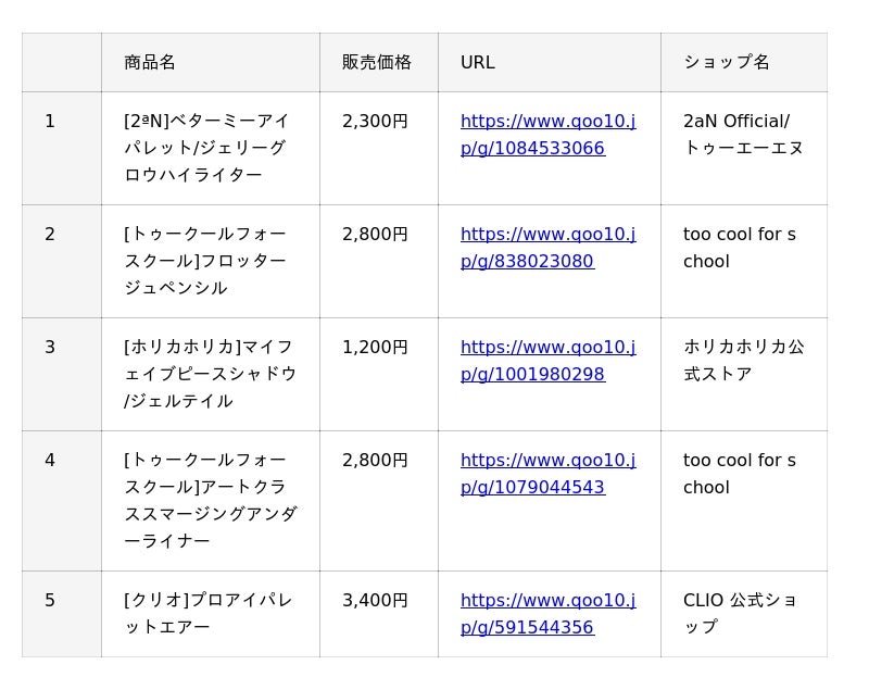 『アイシャドウ』 ランキング