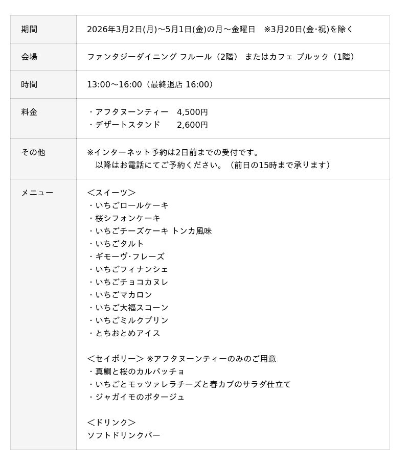いちごアフタヌーンティー・いちごデザートスタンド概要