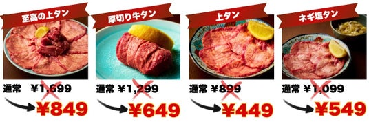 【2品半額!】人気のタン4種が半額&お会計の半額分キャッシュバックの期間限定Wキャンペーン