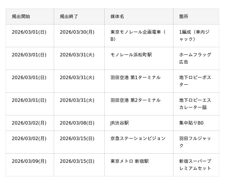 運行期間: 2026年3月1日(土)~3月30日(月)